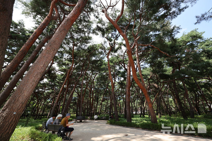 韓国各地に猛暑特報、木陰で暑さをしのぐ市民(1/9)