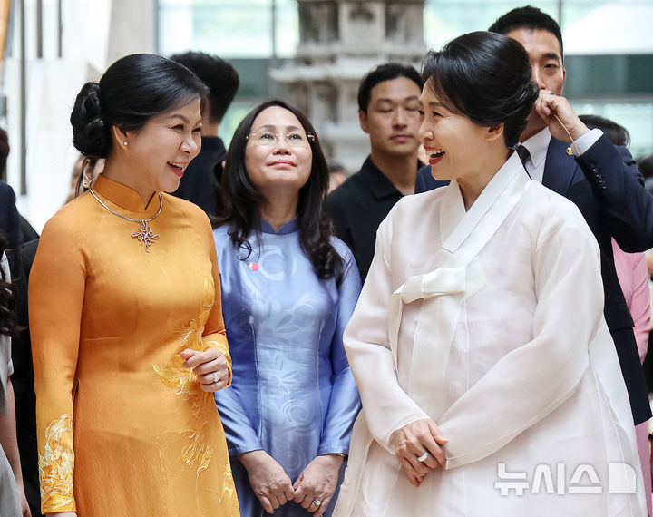国立中央博物館を訪れた金恵京・韓国大統領夫人とゴ・フオン・リー・ベトナム国家主席夫人(7/10)