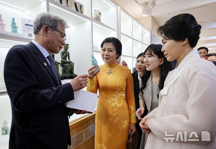 国立中央博物館を訪れた金恵京・韓国大統領夫人とゴ・フオン・リー・ベトナム国家主席夫人(8/10)