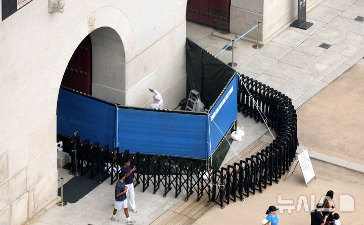 落書きで毀損された光化門の石垣の復旧作業(1/7)