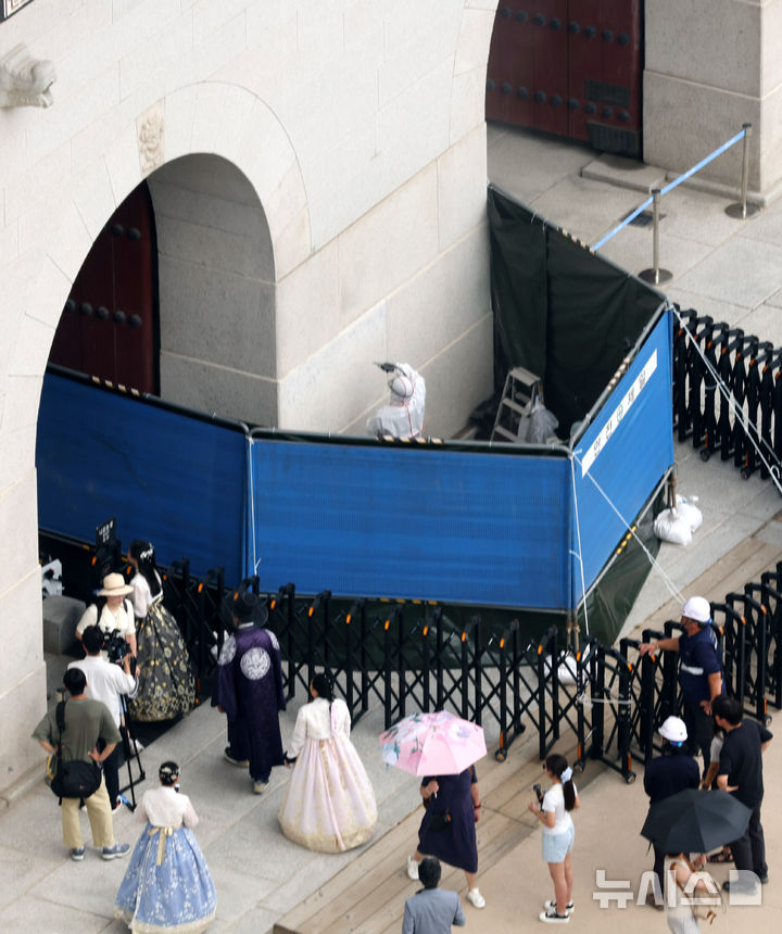 落書きで毀損された光化門の石垣の復旧作業(2/7)