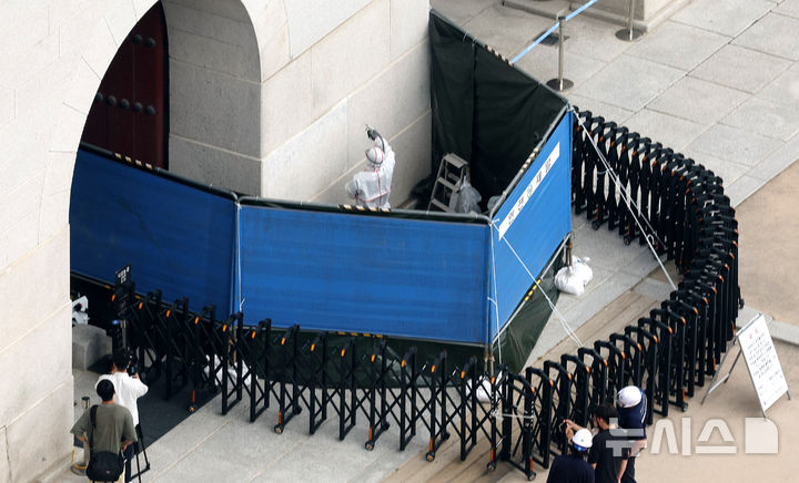 落書きで毀損された光化門の石垣の復旧作業(4/7)