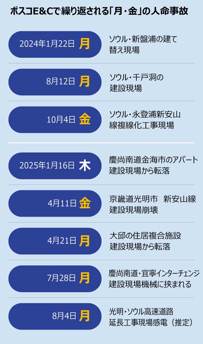 韓国建設大手ポスコの労災事故、8割は月・金に集中していた(2/2)