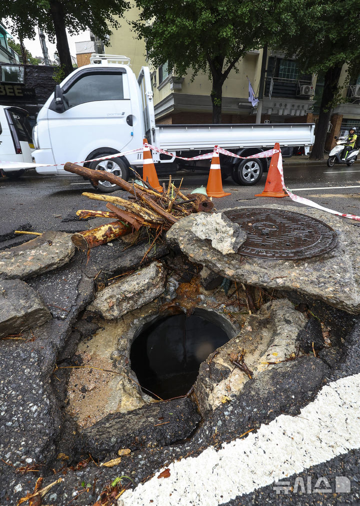 豪雨で破損したアスファルト(7/11)