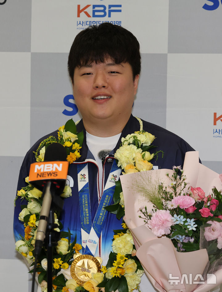 金メダルを首にかけて帰国したビリヤードのワールドチャンピオン、チョン・ミョンウ(5/8)
