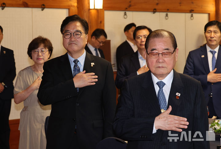 独立運動家子孫との昼食会に臨む禹元植・国会議長(4/7)