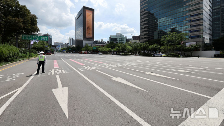 民防衛訓練で車の通行が規制された世宗大路(3/9)