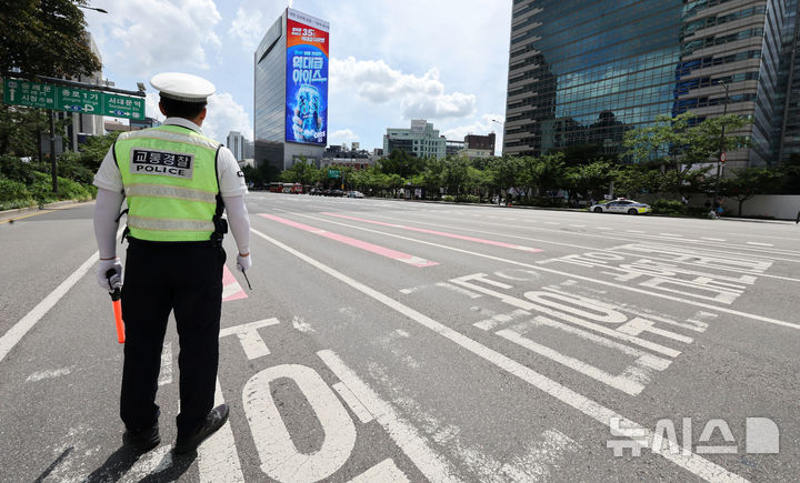 民防衛訓練で車の通行が規制された世宗大路(6/9)