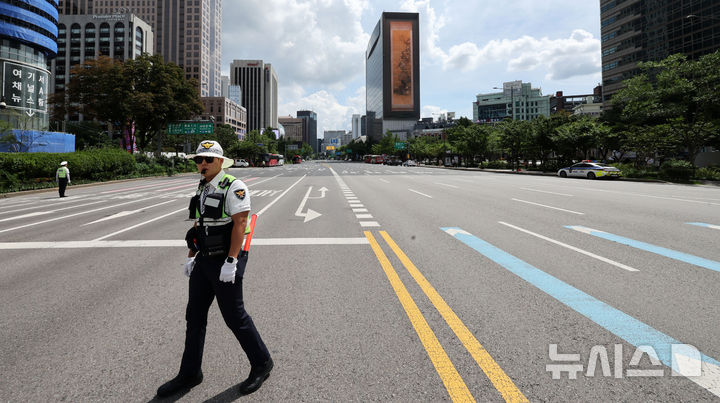 民防衛訓練で車の通行が規制された世宗大路(8/9)