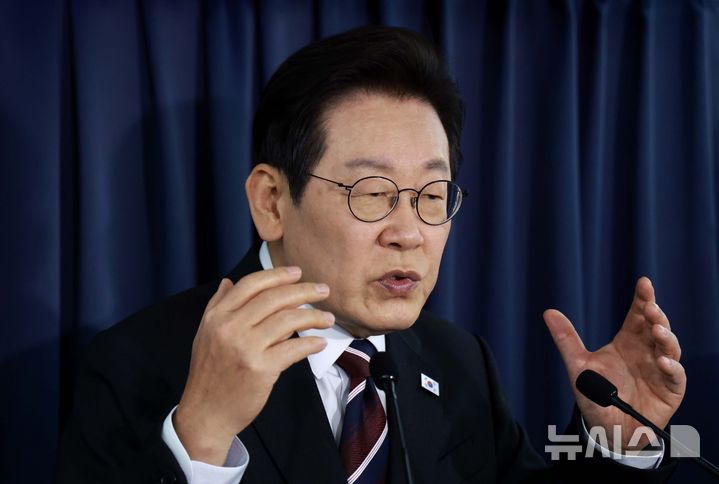 李在明大統領、韓国空軍1号機の中で記者懇談会(3/10)