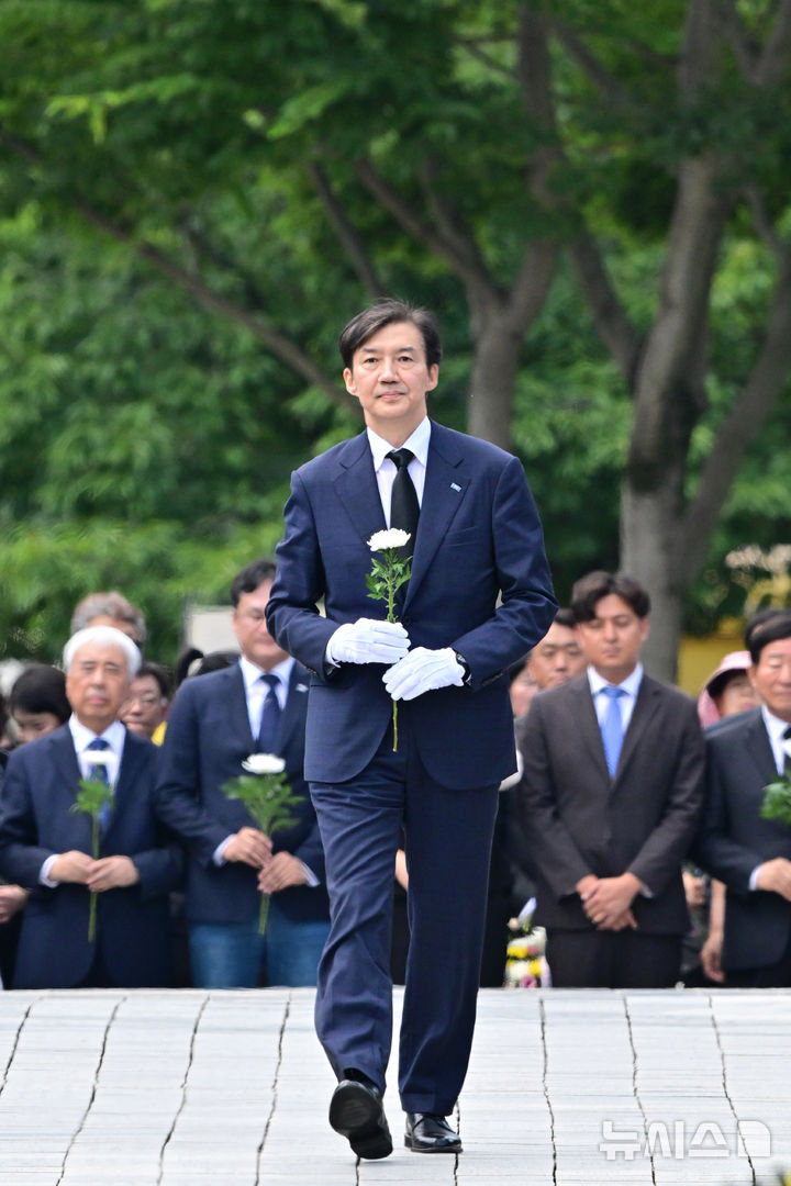 盧武鉉・元大統領の墓参りをする曺国・前祖国革新党代表(8/12)