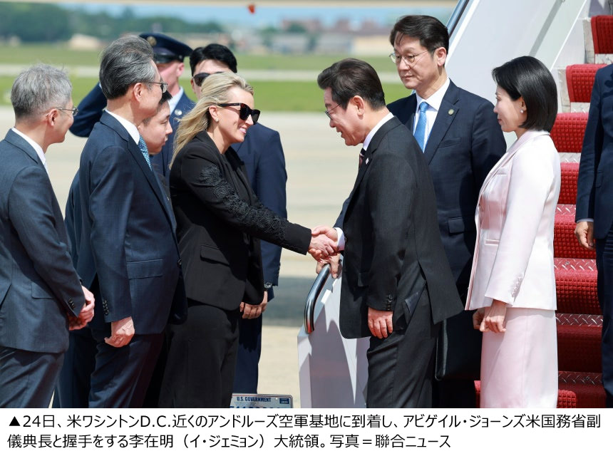 李在明大統領が米国到着、黒い服に黒いサングラスをかけた米国務省副儀典長が出迎え 韓米首脳会談(2/2)