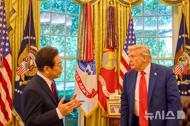 トランプ大統領と記念撮影をする李在明大統領(2/13)