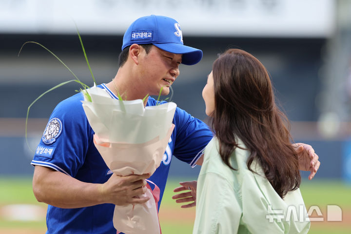野球:現役引退のあいさつするサムスン・ライオンズ呉昇桓 /ソウル(2/12)
