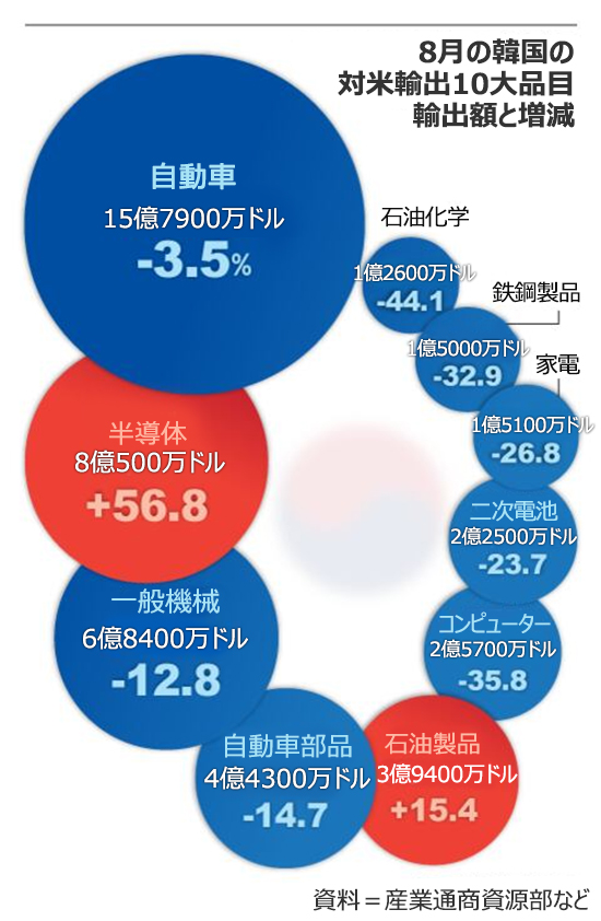 韓米交渉合意でFTA効果消滅、韓国の対米輸出額上位10品目中8品目がマイナス(2/2)