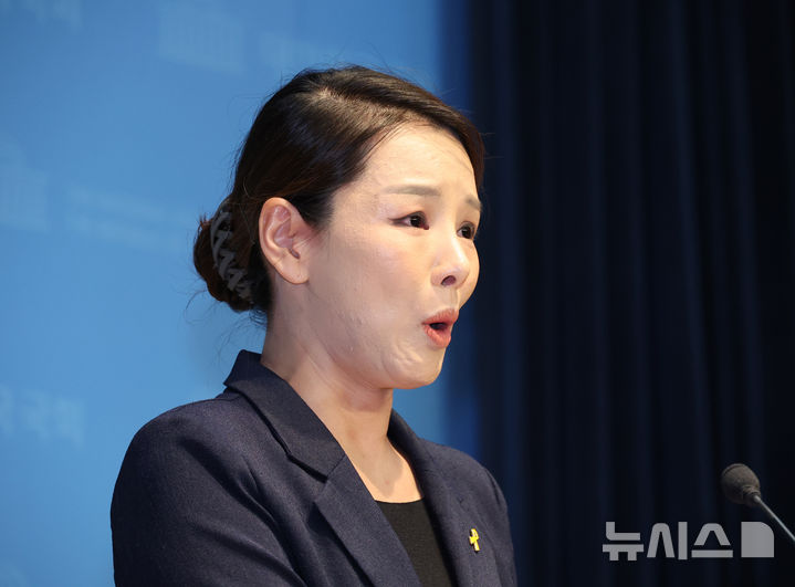 祖国革新党のセクハラ告発・離党記者会見するカン・ミジョン報道官(3/10)