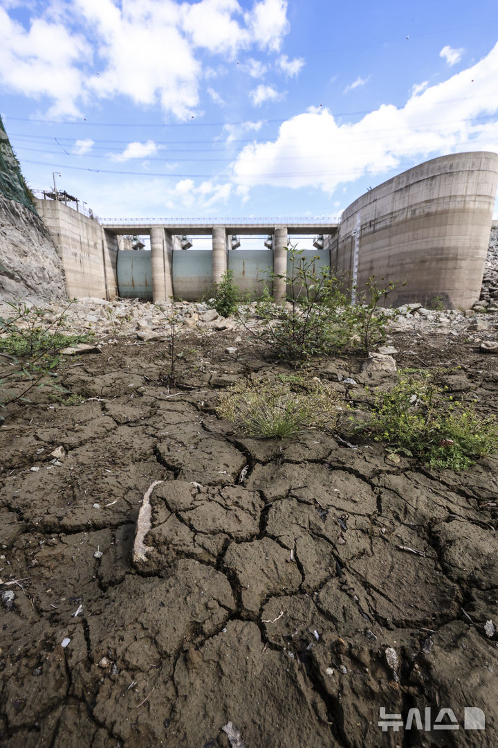 貯水池の底が露出してひびが入っている五峰ダム(2/11)