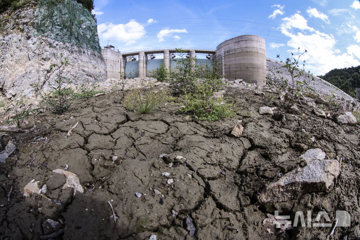 貯水池の底が露出してひびが入っている五峰ダム(3/11)