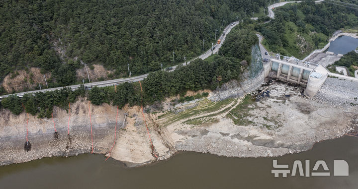 貯水池の底が露出してひびが入っている五峰ダム(9/11)