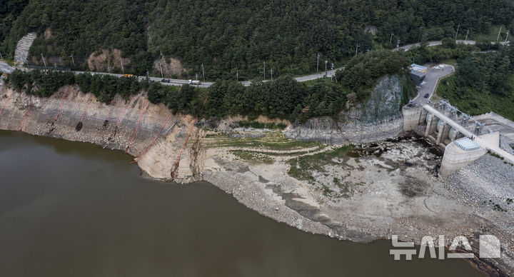 貯水池の底が露出してひびが入っている五峰ダム(10/11)