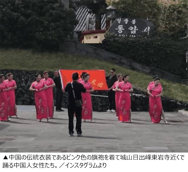 済州島の観光名所でチャイナドレス姿の中国人女性10人が集団舞踊…韓国ネットの反応さまざま(2/2)