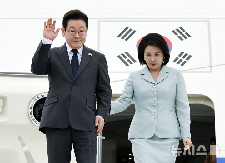 国連総会出席のためJFK国際空港に到着した李在明大統領と金恵景夫人(13/13)
