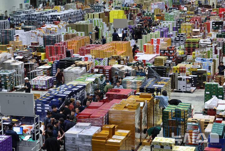 秋夕連休が迫り大忙しの農産物卸売市場 /仁川(2/11)