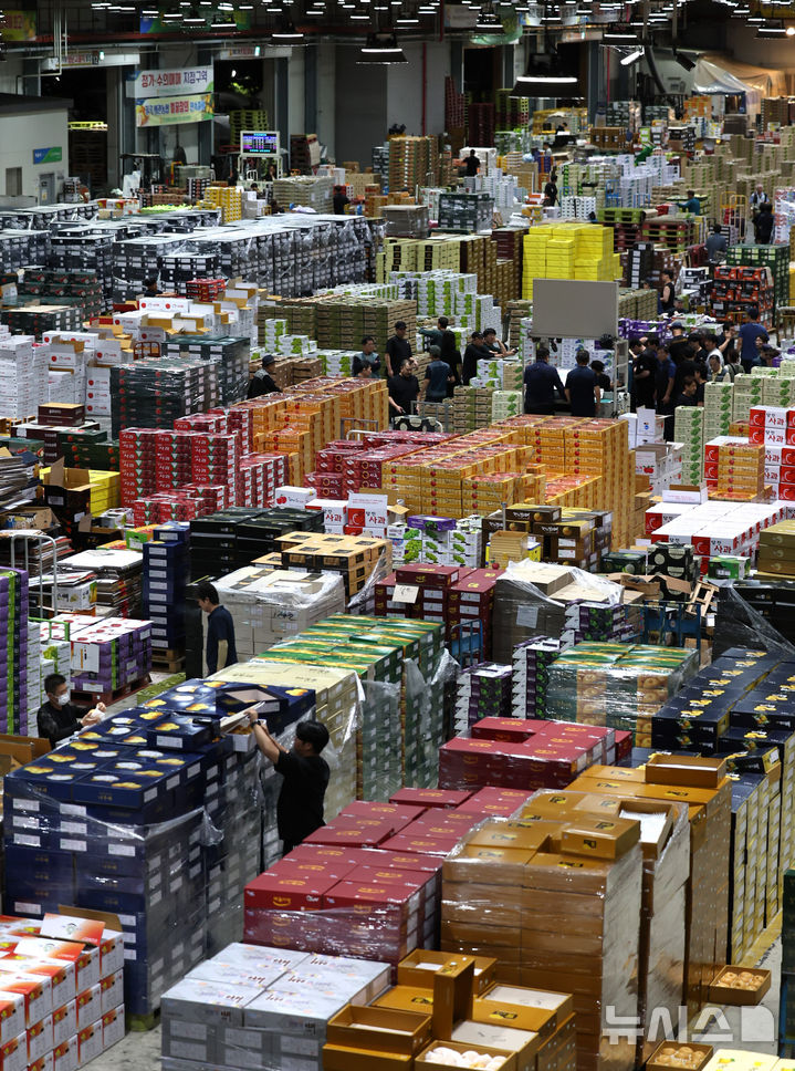 秋夕連休が迫り大忙しの農産物卸売市場 /仁川(4/11)