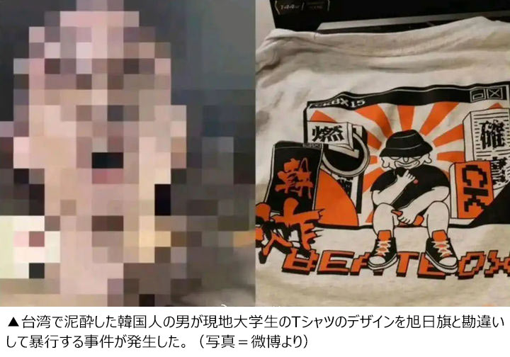 旭日旗と勘違い…台北で赤い放射模様Tシャツ着た台湾人大学生を殴った韓国人男性(31)立件(2/2)