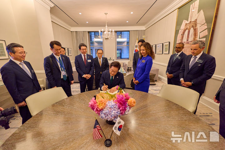李在明大統領 米ニューヨーク証券取引所で取引開始の鐘鳴らす(13/16)