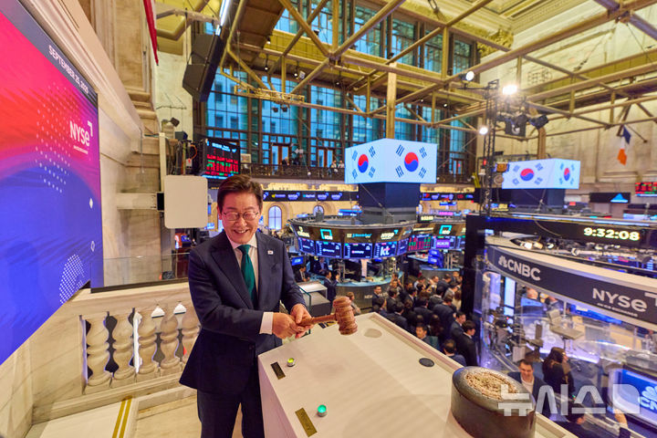 李在明大統領 米ニューヨーク証券取引所で取引開始の鐘鳴らす(14/16)