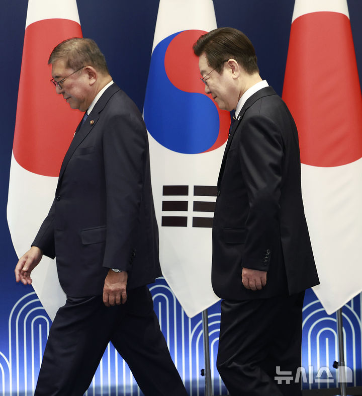 韓日首脳会談:記念撮影する李在明大統領と石破茂首相(17/17)