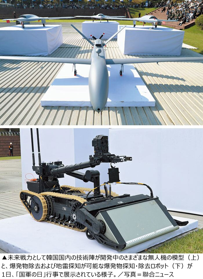 韓国軍、「未来戦力」ステルス無人機・自律探査ロボ公開 (2/2)