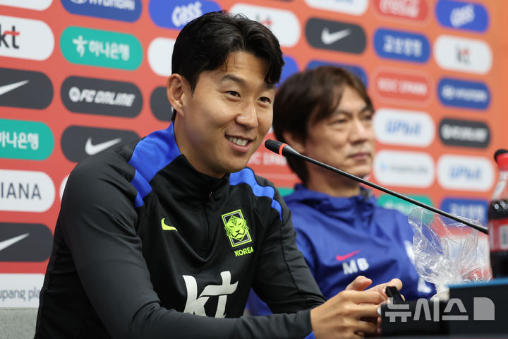 笑顔を見せる洪明甫監督とソン・フンミン選手(2/12)