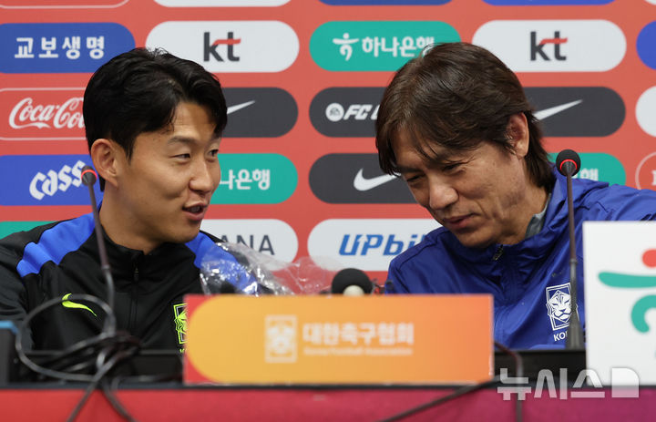 笑顔を見せる洪明甫監督とソン・フンミン選手(6/12)