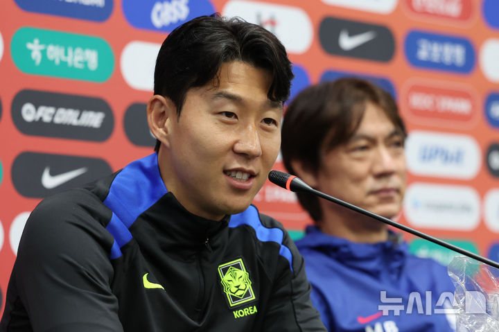 笑顔を見せる洪明甫監督とソン・フンミン選手(7/12)