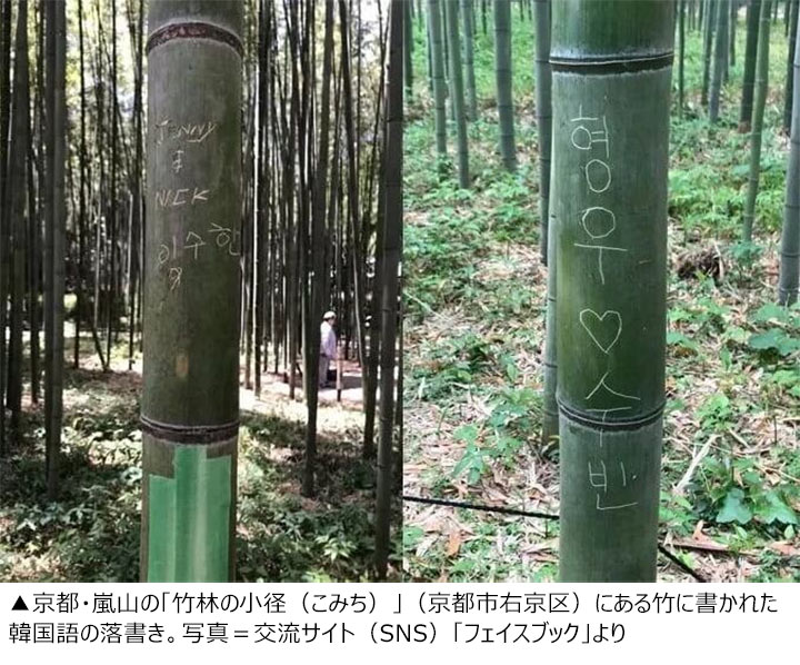 京都・嵐山「竹林の小径」 ハングルの落書きで深刻な被害(2/2)