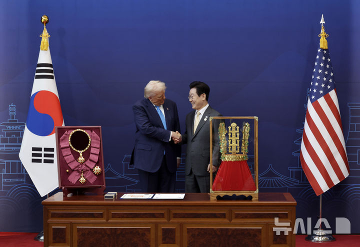 韓国の李在明大統領、米国のトランプ大統領に無窮花大勲章を授与(5/9)
