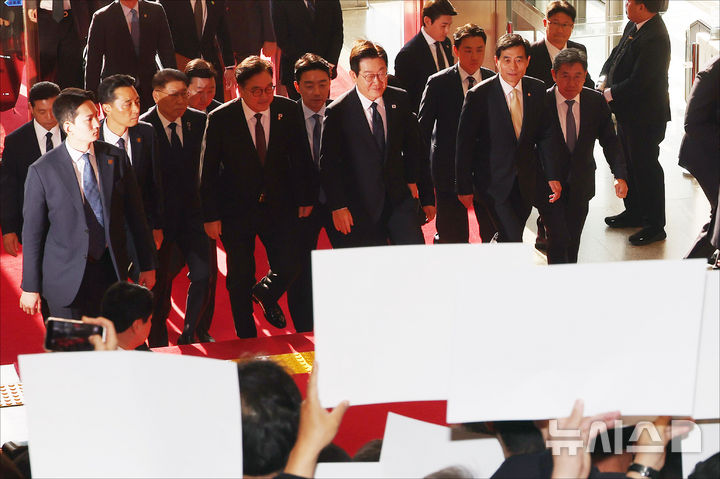 国民の力「沈黙デモ」の前を歩く李在明大統領 /ソウル(15/17)