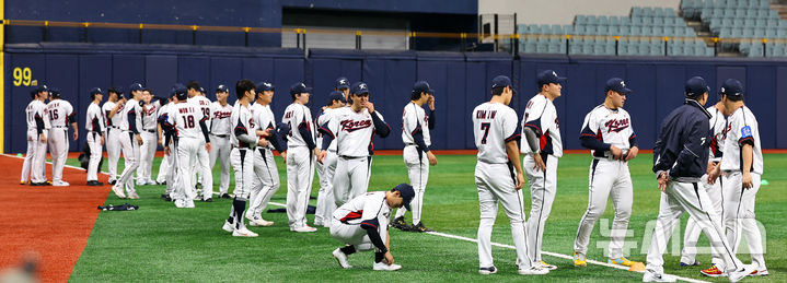 集合写真を撮る野球の韓国代表チーム(4/10)