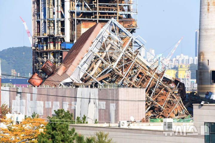 韓国東西発電蔚山火力発電所の大型構造物が崩壊(2/12)