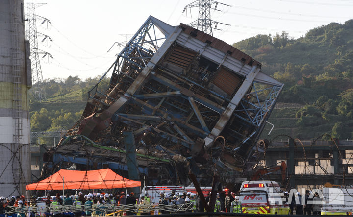 韓国東西発電蔚山火力発電所の大型構造物が崩壊(11/12)