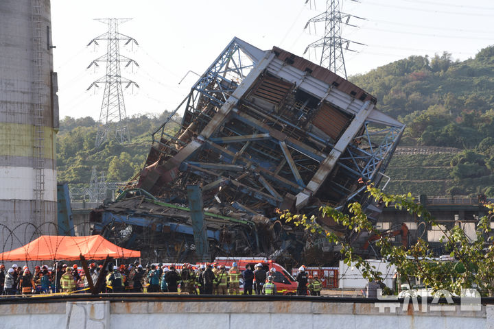韓国東西発電蔚山火力発電所の大型構造物が崩壊(4/12)