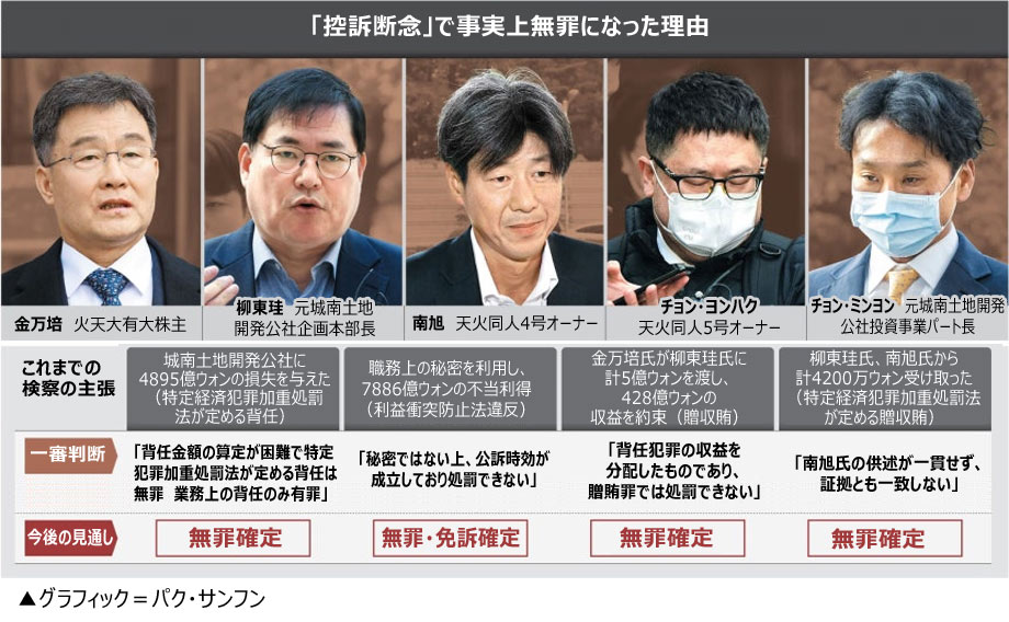 韓国検察の控訴放棄で大庄洞一味の収賄容疑は無罪確定、不当利得7800億ウォン追徴できず(2/2)