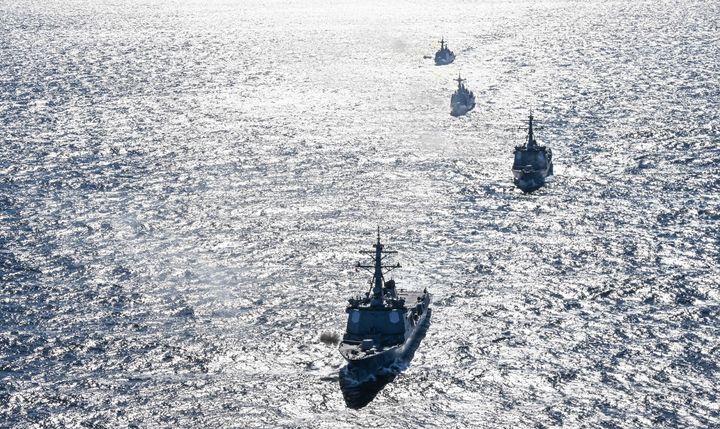 韓国海軍、初の艦隊級海上機動訓練を実施 /東海(4/11)