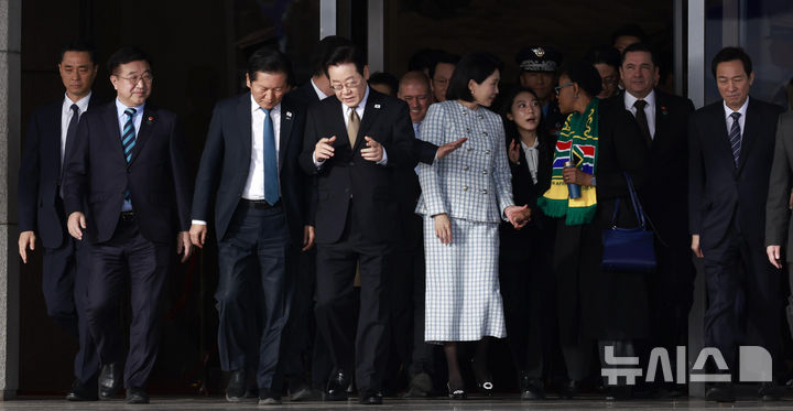 南アフリカのG20首脳会議出席のため専用機に乗る李在明大統領夫妻 /京畿道(7/10)