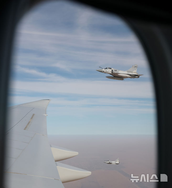 李在明大統領、戦闘機の護衛を受けてUAEに到着(2/8)