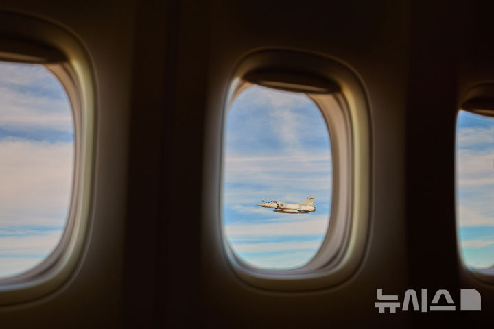 李在明大統領、戦闘機の護衛を受けてUAEに到着(7/8)