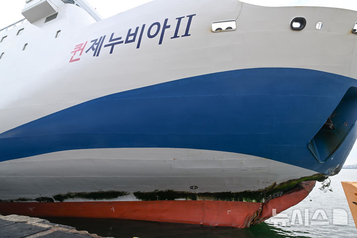 「座礁」クイーン・ジェヌビア2号 損傷の跡くっきり /全羅南道(4/6)
