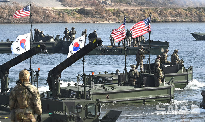 南漢江で実施された韓米連合渡河訓練(3/11)